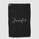 Serviette De Golf Votre nom | Élégant script blanc sur noir