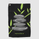 Serviette de golf Zen avec conception de pierres plates empilées. Conception Zen avec feuilles de bambou vertes.