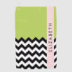 Elégante, élégante et raffinée, motif en zigzag (chevron), couleur noir et blanc sur arrière - plan vert. Un cadeau moderne et tendance, parfait pour les amoureux du zigzag dans votre vie. Personnalisez en ajoutant votre nom, votre pseudonyme, votre monogramme ou vos initiales.