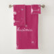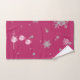 Ajoutez une touche festive à votre décor de salle de bain en cette période de vacances avec un ensemble de serviettes de toilette de Noël rose. Les serviettes sont décorées d'un trio d'ornements de Noël suspendus avec des flocons de neige en chute et un arrière - plan rose foncé. Autres cadeaux et objets de vacances disponibles avec ce design aussi.