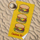 Icône Cheeseburger. Les aliments indésirables entourent les icônes jaune motif arrière - plan. Texte personnalisé.