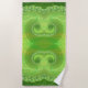 Cette serviette de plage présente un motif fractal en spirale symétrique dans les tons verts.