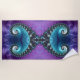 Cette belle serviette de plage présente un dégradé fractal en spirale abstrait dans les tons violet et turquoise.