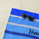 Serviette De Plage Ajouter le nom Bleu et Blanc Vagues Bleu Bleu et B