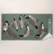 Créez un cadeau personnalisé qui conviendra parfaitement aux amateurs d'oiseaux. Cette serviette de plage personnalisée présente des illustrations de style réaliste de bernaches du Canada en blanc brun et noir dressées contre un arrière - plan vert sage avec une tache en bas pour ajouter un nom en lettres blanches.
