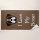 Employez cette serviette de plage d'amusement pour faire chacun vous connaître pour aimer votre animal familier de chien de boxeur. Conçu avec une image d'un visage de boxeur et d'un grand lettrage typographique vous pouvez changer avec votre propre message ou nom de votre chien.