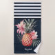 Serviette De Plage Ananas Hibiscus Marine Nautique Bleu strié