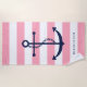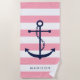 Serviette De Plage Ancre bleu monogramme sur les rayures roses