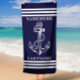 Serviette De Plage Ancre bleue marine et rayures Nom ou texte personn