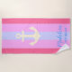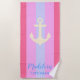 Serviette De Plage Ancre rose Moderne Bandes Nautiques Nom Personnali
