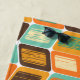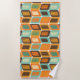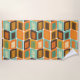 Cette serviette de plage présente un design moderne du milieu du siècle avec des rectangles arrondis inclinés sur le côté et des rectangles inclinés à l'intérieur faits de lignes toutes dans les couleurs des années 1970.
