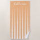 Pink Bandes asymétriques pour créer un effet de faux plis. Les rayures triangulaires se rencontrent pour devenir une couleur solide à l'extrémité opposée de la serviette. Montré dans la pêche à l'abricot orange et blanc. Peut être customisé avec la couleur de votre choix avec le blanc à l'aide des options d'édition. Personnalisez avec votre nom ou votre message dans une police de script fantaisie blanche.