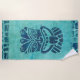 Aqua Tiki Beach Towel. Imprimé sur une serviette de plage par Tina Stewart, à l'origine, en monoempreinte / gel.