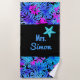 Cette serviette en papier rose noir et bleu hawaïen est l'accessoire parfait pour apporter une ambiance tropicale à vos sorties plage ou piscine. La serviette présente une impression hawaïenne vibrante et attrayante aux frontières, et présente une combinaison délicieuse de monstre coloré, de palmier et de feuilles tropicaux. L'imprimé saisit l'essence des îles hawaïennes, ajoutant une touche de paradis à votre temps de détente. Ce qui rend cette serviette vraiment spéciale est la capacité de la customiser avec votre nom au centre. Le nom customisé est joliment imprimé sur la serviette, ce qui en fait un article unique et personnalisé. Vous pouvez choisir le style de police et la couleur de votre choix pour correspondre à vos préférences. Que vous planifiez une escapade tropicale, un pique-nique sur la plage ou que vous souhaitiez simplement introduire une touche de charme hawaïen dans vos activités quotidiennes, cette serviette Hawaiienne imprimée avec un nom customisé est incontournable. Son design dynamique, sa touche personnalisée et sa construction de haute qualité en font un accessoire exceptionnel qui apporte un morceau d'Hawaii où que vous alliez.