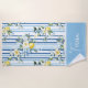 Serviette de plage élégante et personnalisable au design rayé bleu et blanc éclatant orné de fines fleurs jaunes et blanches, accent citron, texte personnalisé. Parfait pour ajouter une touche fraîche et élégante à votre appareil.