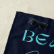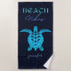 Serviette personnalisée Sea Turtle Beach, un accessoire incontournable pour vos aventures d'été. Le design présente la tortue de mer dans des teintes bleu vif d'aquarelle contre un riche arrière - plan bleu marine et "Beach Vibes" écrit dans la typographie moderne. Personnalisez-le avec votre nom pour en faire le vôtre unique ou pour donner en cadeau réfléchi.