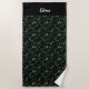 Aquarelle motif vert feuille nom noir Beach Towel