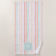 Serviette De Plage Aquarelle Pastel Rose Peach Stripes Monogramme