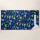 Enfants Personnalisé Dinosaure bleu Aquarelle Plage serviette. Motif de dinosaures amusant en bleu et vert sur bleu foncé arrière - plan. www.SamAnnDesigns.com
