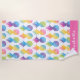 La serviette de plage de style tropical est ornée d'un motif d'ananas colorés en arc-en-ciel et d'un dégradé de cravate d'aquarelle. Personnalisez le texte personnalisé avec l'arrière - plan rose vif avec le prénom, le nom de famille ou d'autres termes préférés.