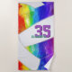 Cette serviette de plage colorée sur le thème du volley-ball pour les filles dispose d'un volley-ball abstrait agrandi en couleurs arc-en-ciel - son nom et son numéro de maillot sont positionnés hors du centre, personnalisables en couleurs coordonnées - par katz_d_zynes
