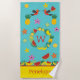 Bananes jaune vif, tranches de pastèque rouge juteuse, ananas, fleurs et oiseaux rouges décorent cette mignonne serviette tropicale. Ajoutez votre nom, nom de famille, nom de bateau ou nom de club en bas et ajoutez votre initiale dans la couronne du milieu pour un monogramme personnalisé pour votre plage et votre piscine !