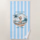 Make waves with this stylish “Baby on Board” beach club towel, perfect for a surf-themed baby shower or coastal celebration. Featuring soft blue and white stripes with an adorable beach baby design, this towel brings a chic Miami-inspired vibe to your event. Ideal as a unique baby shower gift, beach day essential, or keepsake for parents-to-be, it blends practicality with beautiful seaside style. Perfect for tropical, nautical, and beach-themed celebrations.