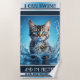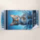 Serviette de plage avec un chaton mignon dans l'eau, nageant courageusement. L'arrière - plan est un design rayé bleu marine. Idéal pour le bord de la piscine ou la plage.