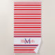 Serviette De Plage Bande rouge et blanche avec Monogramme bleu marine