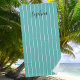 Serviette De Plage Bandes blanches sur nom de script Turquoise et noi