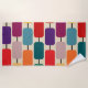 Cette serviette de plage a un design Bauhaus de rectangles arrondis collés les uns aux autres en rangs.