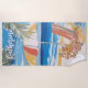 Scène de plage amusante et colorée avec un parasol rayé et transat qui est facilement personnalisée. Super serviette de plage pour des vacances au soleil, Spring Break, piscine time, bachelorette fêtes et plage de l'océan fun!