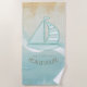 Cette serviette de plage aux couleurs douces de la mer et du sable vous permet d'ajouter facilement votre nom et votre texte en utilisant la modèle fournie. L'image simple de voilier sur un arrière - plan en difficulté, aquarelle est mise en évidence par un accent de vague en aqua et blanc. Si vous n'avez pas la chance d'avoir une maison de plage ou un chalet, il vous suffit de changer le texte sur ce design amusant à tout ce qui vous convient. Recherchez ID623 pour voir la coordination des éléments balnéaires et des produits supplémentaires avec cette conception.