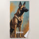 Un malinois allemand noir et bronzé pose contre un arrière - plan d'automne.