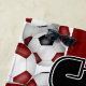 Cette serviette de plage à thème sportif pour les joueurs de football dispose d'une bande de maroon de taille variée, de boules de football noir et blanc tournées partout sur un arrière - plan blanc personnalisable - personnalisez avec le nom de l'athlète et le numéro de maillot plus nom de l'équipe et nom de la mascotte - par katz_d_zynes