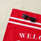 Bienvenue À Notre Lac House Famille Monogram Red Beach Towel. Personnalisez ce design personnalisé avec votre propre nom de famille, année établie, ville et état. Les serviettes de plage d'été parfaites pour votre maison de lac familiale, chalet, bateau ou maison de plage.