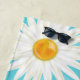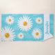 Cette serviette de plage présente des fleurs de marguerite blanche illustrées de Destei de différentes tailles. La couleur arrière - plan est bleue et elle a un motif clair de feuille. Il y a aussi une zone de texte personnalisable pour un nom en bas.