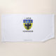 Serviette de plage et des options avec le blason de L'Aigle en Normandie - France Un aigle bi-céphales noir sur un fond jaune doré et au dessus trois fleurs de lys dorées sur fond bleu Roi.