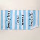 Serviette De Plage Bleu Blanc Aquarelle Stripes Plage Typographie