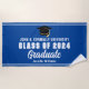 Cette serviette de plage moderne bleu et blanc personnalisé senior graduation party propose une typographie classe et votre nom de collège pour la classe de 2024 et des lettres Varsity blanches. Customisez avec votre nom de diplômé sous l'écriture chic manuscrite et le casquette noir pour un grand cadeau de souvenir.