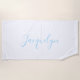 Serviette De Plage Bleu Blanc Plaine Élégant Moderne Calligraphie Nom