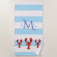 Serviette De Plage Bleu clair rayures rouge homard nom