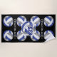 L'équipe de volley-ball des filles colore la serviette de plage personnalisée avec un motif de volley-ball stylisé bleu, gris et blanc arrangé dans un motif miroir avec le texte "I love volleyball" - son nom et son numéro de maillot sont personnalisables - par katz_d_zynes