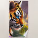 Serviette De Plage Bleu Tiger Cub et Fleurs pourpres