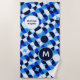 Serviette De Plage Blue Geometric Mosaic Bauhaus Monogram Custom Name