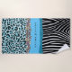 Cette magnifique plage personnalisée est géniale pour s'assurer que rien ne se perd dans la laverie collégiale parce qu'elle est customisée avec votre nom dessus! Idéal pour les filles qui aiment le bleu ou les garçons qui veulent un peu de bling. Doté d'un design turquoise et noir avec parties scintillant bleue turquoise et empreinte de léopard bleu.