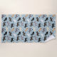 Chien-taureau français mignon avec noir, fawn, blanc, gris et brindle couleurs de manteau, pawprints et os de chien sur un arrière - plan bleu clair.