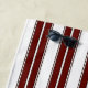Serviette de plage à rayures bordeaux et blanc.