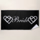 Bride Black White Hearts Beach Towel est un excellent moyen pour chaque mariée ou épouse de célébrer son mariage ! La grande serviette de plage a un arrière - plan noir avec des coeurs blancs accrochés à l'avant et à l'extrémité de "Bride" qui est également dans un joli design de police cursive blanche.