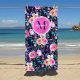 Serviette De Plage Broderie initiale fleurie boho rose et marine au l